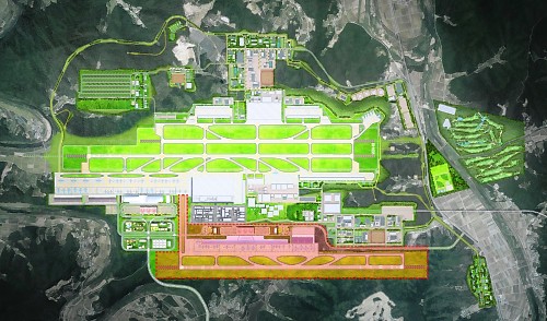 | ↑↑ 대구경북 통합신공항 조감도. 붉은색 부분이 2단계 확장계획. 대구시 제공 |