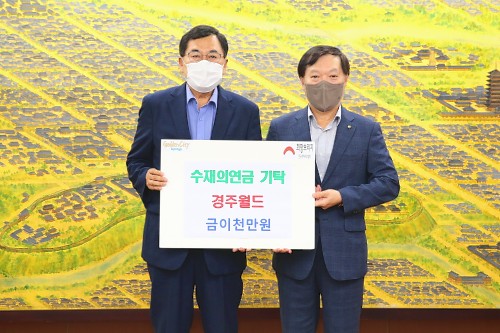 경주월드 정원기 대표는 14일 경주시청을 방문해 11호 태풍 힌남노로 피해를 입은 이재민들을 위해 써달라며 의연금 2000만원을 전달했다.