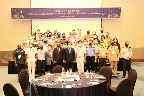 경주시는 국방부와 공동으로 주한 대사관에 근무하는 외국 무관들을 초청해 ‘주한외국무관단 협력 간담회’를 15일 개최했다.
