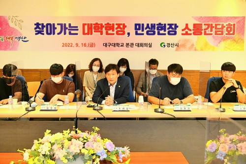 경산시는 대학 현장의 목소리를 듣기 위해 16일 대구대학교 대회의실에서 관내 10개 대학교 학생 20여 명과 소통간담회를 열었다.