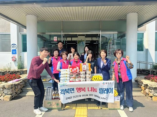 청도군 각북면 생활개선회가 지난달 29일 행복 나눔 릴레이 4번 주자로 바톤을 이어 받았다. 행복 나눔 릴레이는 각북면 12개의 민간 단체가 자발적으로 각북면 복지 향상을 위하여 매월 마지막 주 목요일에 어려운 이웃을 찾아가 다양한 복지서비스를 지원한다.