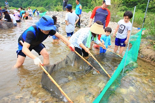 | ↑↑ 왕피천 피래미 축제 모습. [울진군 제공] |