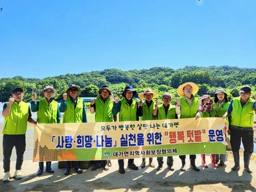 성주군 대가면지역사회보장협의체는 지난 4일 행복텃밭 약 2000평에 저소득층 지원사업을 위한 모내기 작업을 실시했다. 위원들은 무더운 날씨에도 구슬땀을 흘리며 손수 모를 심었으며, 가을 수확 후 수익금은 관내 저소득층, 한부모가정 등에 쓰일 예정이다.