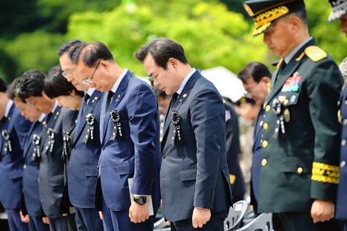 | ↑↑ 지난 6일 경북도가 국립영천호국원에서 ‘제70회 현충일 추념식’을 엄숙히 거행하고 있다. [경북도 제공] |