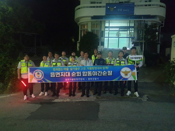 봉화군 석포자율방범대는 지난 22일 봉화자율방범연합대, 석포파출소 등 약 20여 명이 참여한 가운데 읍면 지대 순회 합동야간순찰을 실시했다. 이번 합동야간순찰은 범죄 취약지역에 대한 집중 계도 활동을 통해 범죄를 예방하고, 주민들에게 안심할 수 있는 생활 환경을 제공하고자 추진됐다. 우병백 기자