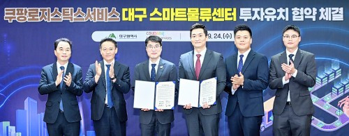 대구시는 지난 24일 오후 4시 30분, 시청 동인청사 2층 상황실에서 국내 택배부문 1위 기업인 ‘쿠팡로지스틱스서비스(유)’(이하 ‘쿠팡로지스틱스서비스’)와 수성알파시티 내 첨단 스마트물류센터 구축을 위한 투자유치 협약을 체결했다.