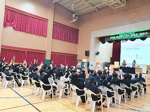 행사에 참여한 2학년 김모 학생은 “이번 북토크가 진로에 대해 고민해 보는 계기가 됐고, 반려동물과의 교감을 다룬 이야기에 깊은 공감을 느꼈다”며 소감을 전했다. 김광중 교장은 “이번 북 토크는 다중지원 학생 성장 프로그램의 취지에 맞게 학생 한 명 한 명의 마음과 성장을 살피는 활동”이라며 “앞으로도 학생들이 자신을 이해하고 건강하게 성장할 수 있도록 다양한 프로그램을 운영하겠다”고 밝혔다. 고병희 기자