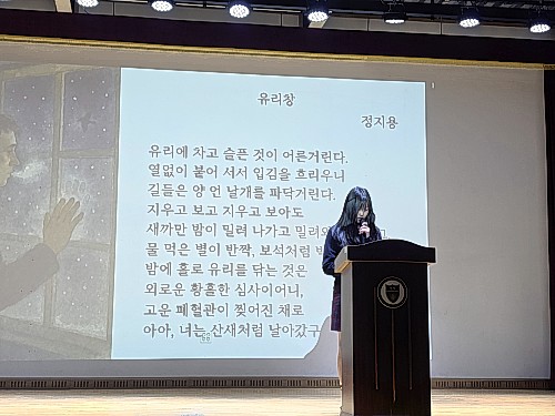 시 낭송 대회에서 고즈넉하게 시를 읊은 3학년 김모 학생은 “아침 독서 활동 때 감명깊게 읽은 시집에서 시를 골라 시를 읊었는데, 평소 느꼈던 감정을 친구들에게 잘 전달한 것 같다”고 이야기했다.
