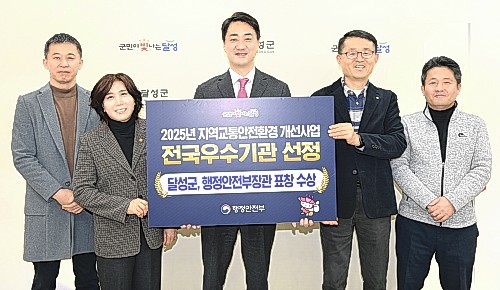 대구 달성군이 행정안전부 주관 ‘2025년 지역교통안전환경개선사업’ 평가에서 전국 우수기관으로 선정되며, 행정안전부 장관상을 수상했다고 4일 밝혔다.