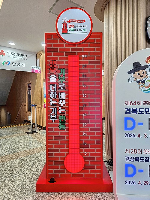 안동시는 ‘행복을 더하는 기부, 기부로 바꾸는 안동’이라는 슬로건으로 진행 중인 ‘희망2026 나눔캠페인’에서, 목표액을 조기 달성하며 사랑의 온도 100도를 돌파했다고 22일 밝혔다. 올해 안동시의 목표액은 7억원으로, 지난해보다 약 5000만원 상향한 금액이다. 경기 침체와 대형산불 등 어려운 여건 속에서도 시민과 기업의 적극적인 참여가 이어지며 목표액을 초과 달성하는 성과를 거뒀다.