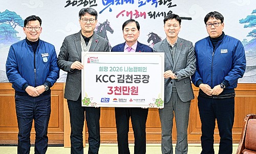 김천시는 지난 19일, ㈜KCC 김천공장으로부터 희망2026나눔캠페인 성금 3000만원을 전달받았다고 밝혔다.