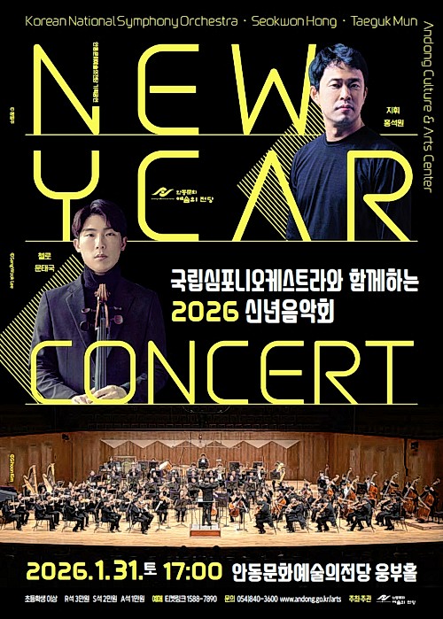 안동문화예술의전당은 2026년 병오년 새해의 시작을 알리는 ‘국립심포니오케스트라와 함께하는 2026 신년음악회’를 오는 31일 오후 7시 30분, 안동문화예술의전당 웅부홀에서 개최한다.