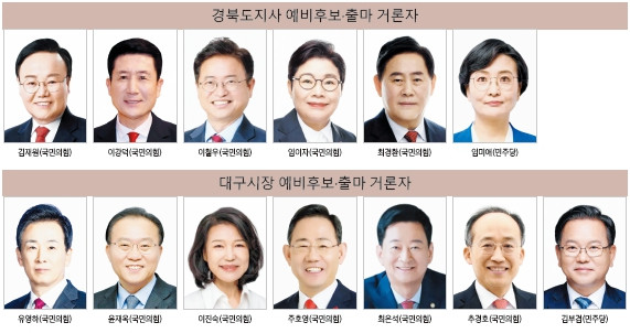 아무튼, 오는 6월 3일의 대구시장·경북지사 선거가 사상 첫 ‘통합특별시장’ 선출 무대가 될 뻔하면서 기존 선거 지형과 구도를 근본적으로 뒤흔들 수 있는 최대변수로 떠올랐지만, 극적인 합의가 없는 한 특별법의 통과가 사실상 물 건너간 것으로 보여 결국 대구시장 선거와 경북도지사 선거를 각각 치르게 됐다. 대구·경북은 국민의힘 강세 지역이다 보니 출마자가 몰리며 ‘춘추전국’ 양상이다. 특히 홍준표 전 시장이 작년에 대선 출마를 위해 중도 사퇴한 대구시는 현재 권한대행 체제로 운영 중이어서 ‘무주공산’을 차지하기 위한 경쟁이 어느 때보다 치열하다. 당내 최다선(6선)인 주호영 국회부의장을 비롯해 윤재옥(4선)·추경호(3선) 의원 등 중진들이 줄줄이 출마를 선언했다. 초선 유영하·최은석 의원과 이진숙 전 방송통신위원장 등까지 가세해 8명이 경쟁하는 구도가 예상된다. 여당인 민주당에서는 대구시장 후보로 홍의락(71·전 경제부시장), 김부겸(68·전 국무총리) 등이 유력 후보로 떠올랐으나 홍 전 의원이 최근 불출마를 선언했고, 김 전 국무총리는 아직 의견 표명이 없는 상황이다.