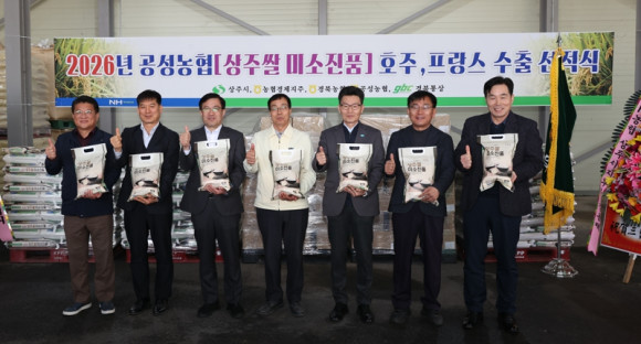 상주시는 지난 27일 공성농협 미곡종합처리장(RPC)에서 상주쌀 ‘미소진품’의 프랑스·호주 선적식을 진행하며 총 7.5톤 규모(프랑스 1.6톤, 호주 5.9톤)의 맛있는 미소를 해외 식탁으로 전달했다.