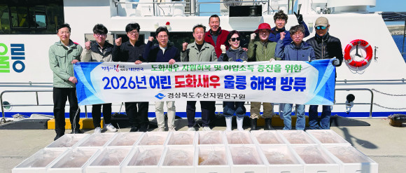 경북도 수산자원연구원은 수산자원 회복과 어업인 소득 증대를 위해 동해안의 대표적 고부가가치 품종인 ‘독도새우’ 15만 마리를 16일 울릉 해역에 방류했다고 밝혔다. 이어 이달 말에는 울진 왕돌초 해역에 20만 마리를 추가로 방류할 계획이다.[경북도 수산자원연구원 제공]