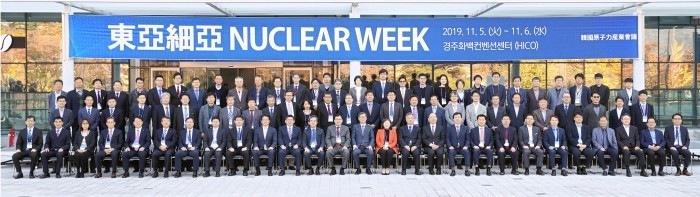 | ↑↑ 제7회 동아시아 원자력포럼이 6일 경주 화백컨벤션센터에서 개최돼 한국, 일본, 중국, 대만 등 동아시아 4개국 원자력 전문가들이 한 자리에 모여 기념촬영을 하고 있다. |