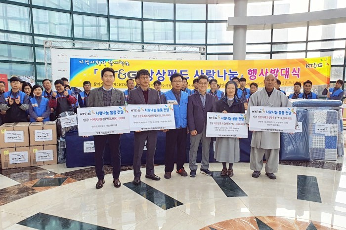 KT&G 영주공장은 7일 KT&G 영주공장에서 영주시 관내 소외계층에게 연탄, 난방유 등 겨울나기 용품을 지원하는'2019년 KT&G 상상펀드 사랑나눔'발대식을 개최했다. 이날 행사에는 신동걸 KT&G 영주공장장, 장욱현 영주시장과 영주시종합사회복지관, 영주시장애인종합복지관, 영주재가노인복지센터, 영주시노인복지관 등 봉사단체 회원 60여명이 참석한 가운데 발대식을 가진 후 연탄배달을 실시하며 소외계층에게 따뜻한 마음을 전달했다.