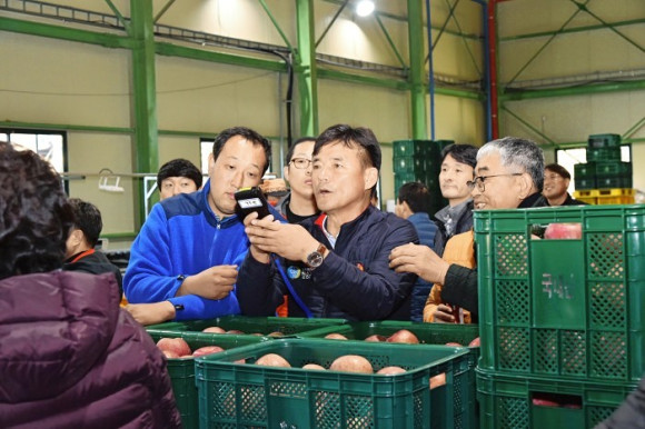 또 지난 7일부터 이미 사과농가로부터 출하 물량을 받고 있으며, 8일 오후 3시 첫 경매를 시작으로 공판장은 활기를 띄었다.